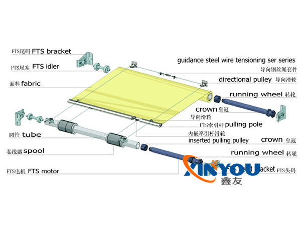 電動遮陽百葉FTS電動天棚簾產(chǎn)品結構示意圖